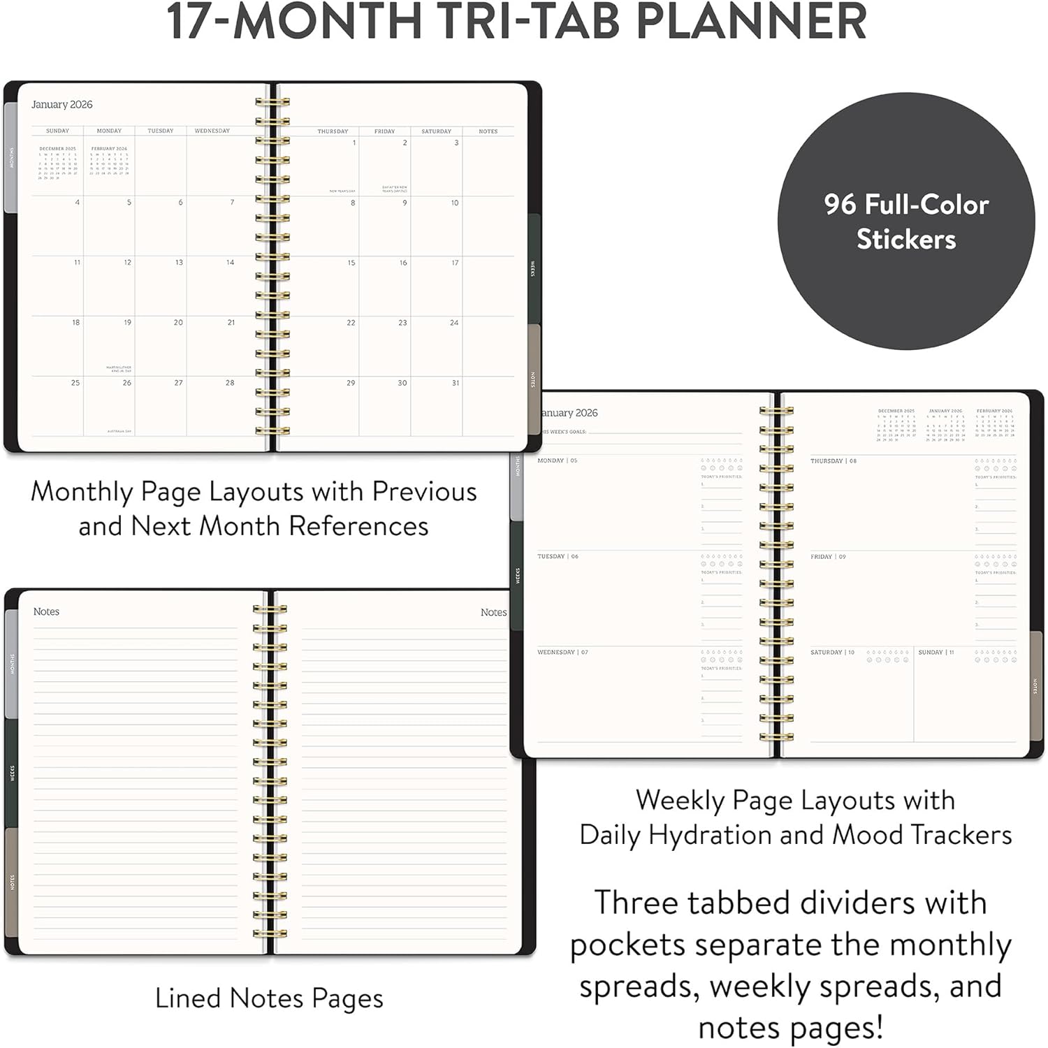 - EFFICIENT ORGANIZATION: This 17-month planner (August 2025 to December 2026) includes monthly and weekly views, plus note-taking pages, offering an organized approach to managing a busy schedule.