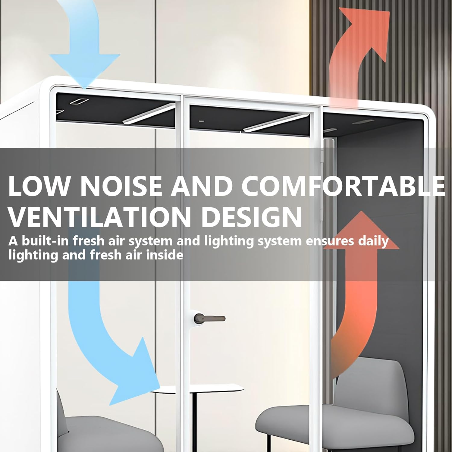 Office Sound Booth with Audio Privacy - Portable Soundproof Booth Includes White Frame with Curved Corners,Soundproof Room with Light,Fans, Magnetic Door Lock for Negotiation Room (90.55IN)