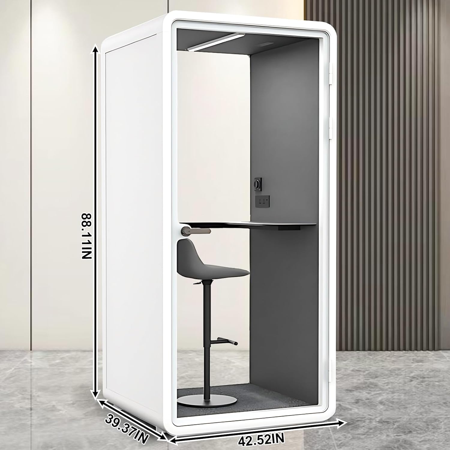 Office Sound Booth with Audio Privacy - Portable Soundproof Booth Includes White Frame with Curved Corners,Soundproof Room with Light,Fans, Magnetic Door Lock&Table for Study (42.52IN)
