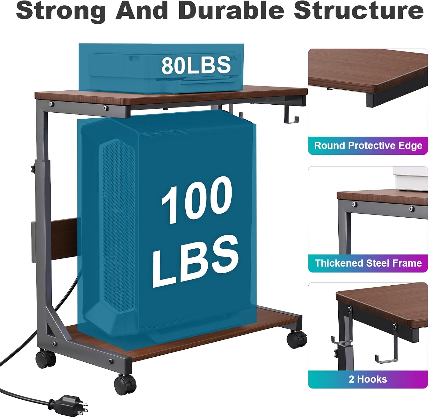 - Pc Tower Stand With Charging Station: This Mobile PC Standing with dual 120V/12A outlets and dual USB ports can power your laptop, smartphone, printer, tablet or any electronic device. Great for keeping an organized workspace. Plus, the PC Tower Rack doubles as a side table to provide additional power for your desk lamp
