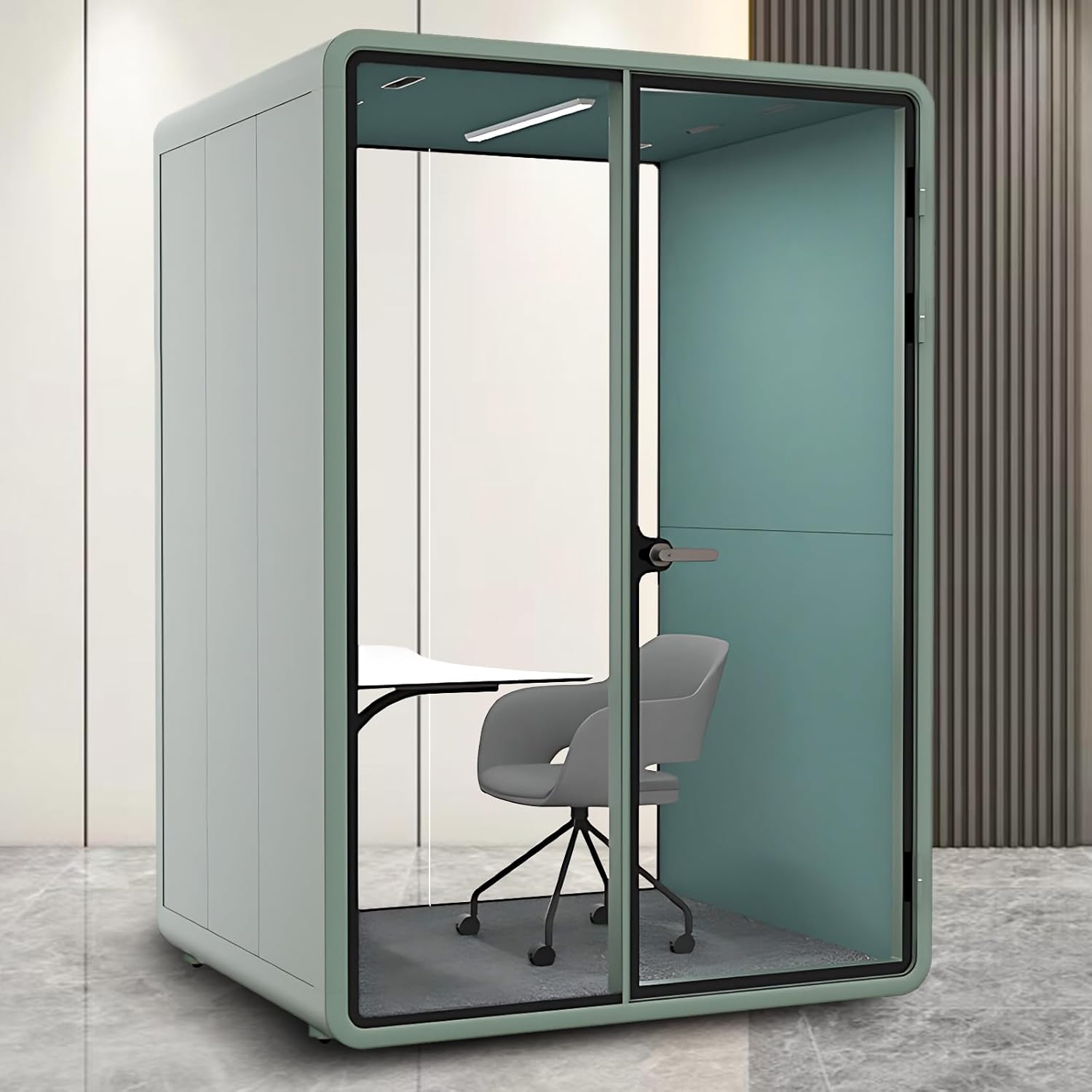 Office Sound Booth with Audio Privacy - Soundproof Recording Booth Includes Green Frame with Curved Corners,Soundproof Room with Light,Steel Plate Structure for Study (62.99IN)