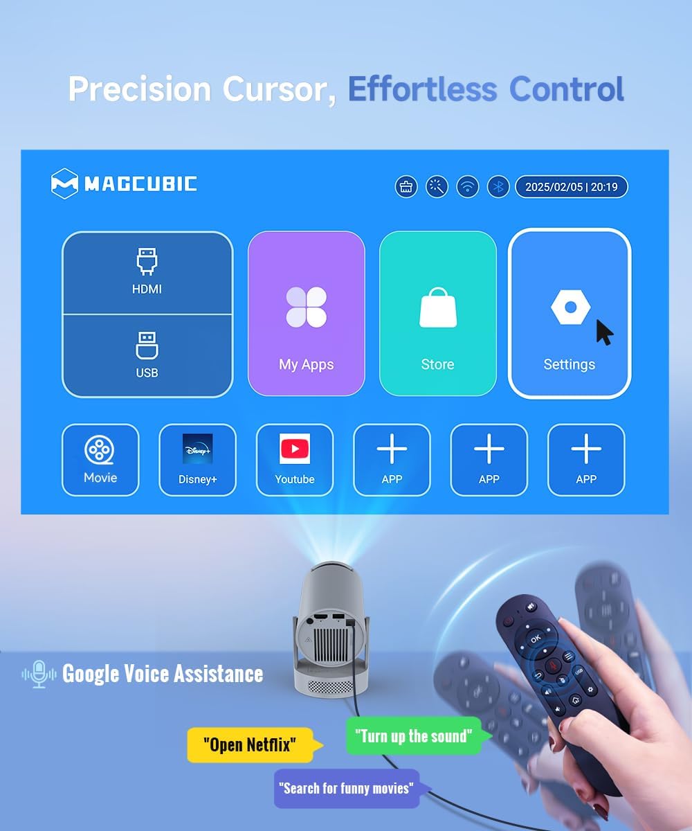 - Intuitive and Precise Control: Our projector comes with an advanced Air Mouse remote that combines a traditional remote and mouse into one, offering seamless navigation and precise pointer control. It supports voice commands for hands-free adjustments.