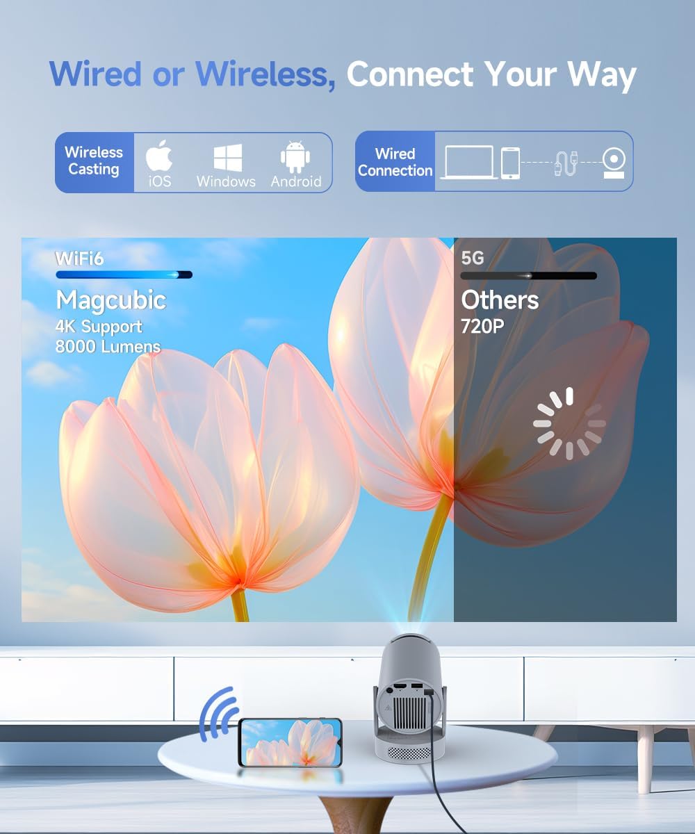 - Stunning Visuals & 5W SoundBase Speaker: With 8000 lumens and an 8000:1 contrast ratio, this projector provides sufficient brightness for casual movie watching, kids' shows, or gaming. Additionally, the 5W SoundBase Speaker enhances both the visual and auditory experience, giving you rich sound and clear images without the need for external speakers.