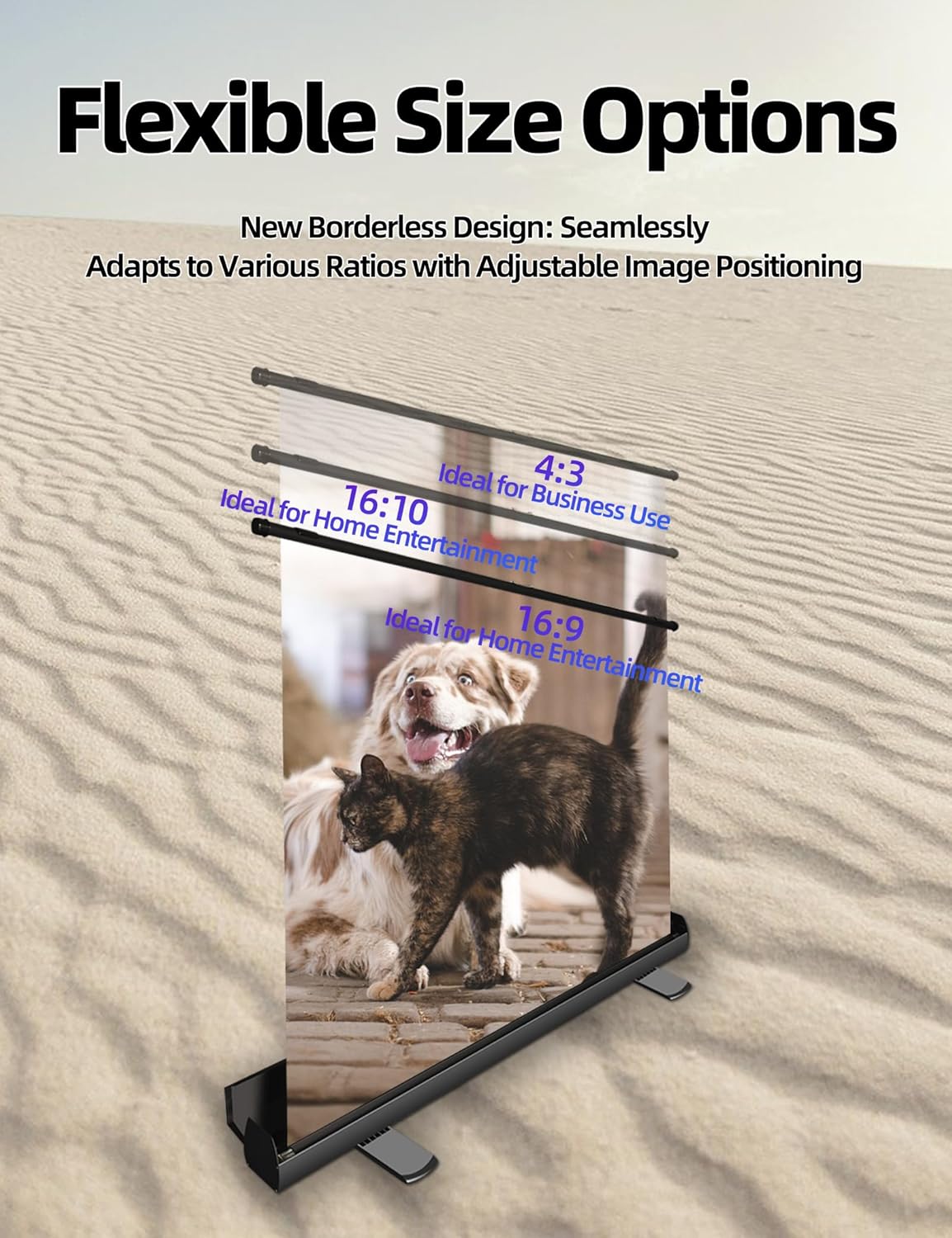 - Portable & Versatile Use:Easily carry and set up this pull-up projector screen anywhere — perfect for home theaters, business presentations, classrooms, and outdoor movie nights. Its compact design makes it a travel-friendly, all-in-one solution.