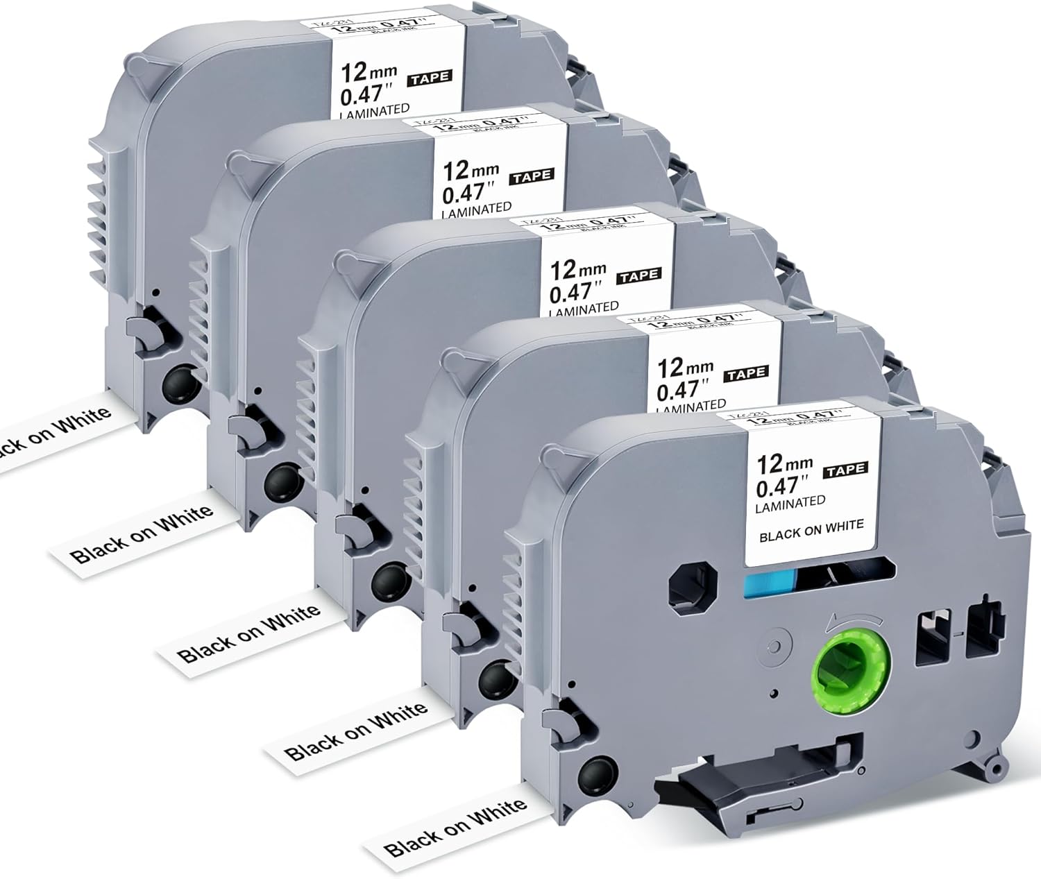 - Quantity:5-Pack Compatible with Brother P Touch Label Maker Tape Refill 12mm 0.47 Laminated White TZ Tape TZe-231 TZ231 new cartridges design