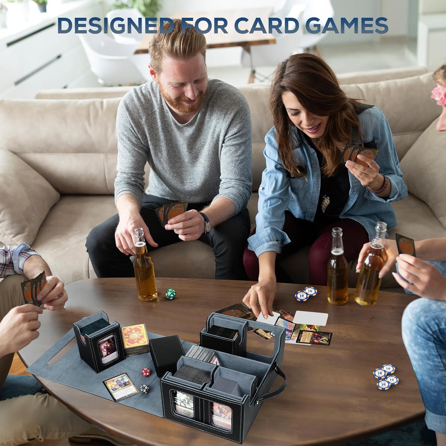 - 【Holds 600+ Double Sleeved Cards】The size of our deck card case is 11.0x7.9x4.7 inches, large enough to easily store 900+ single-sleeved cards, 600+ double-sleeved cards, 1400+ sleeveless cards.