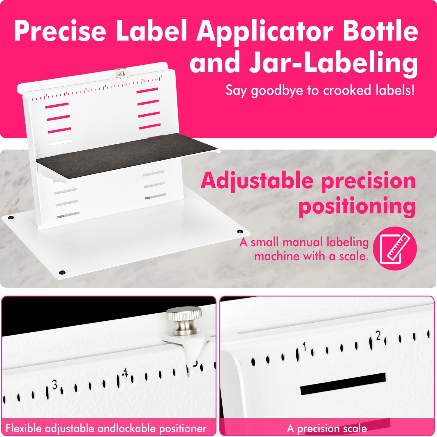 - Easy to use - labeling tool for bottle The platform for placing cans/bottles can be quickly adjusted, even if different specifications of cans/bottles are replaced in a short time, it can be easily handled. The bottom is added with non-slip rubber feet, which can effectively prevent displacement on the smooth platform.