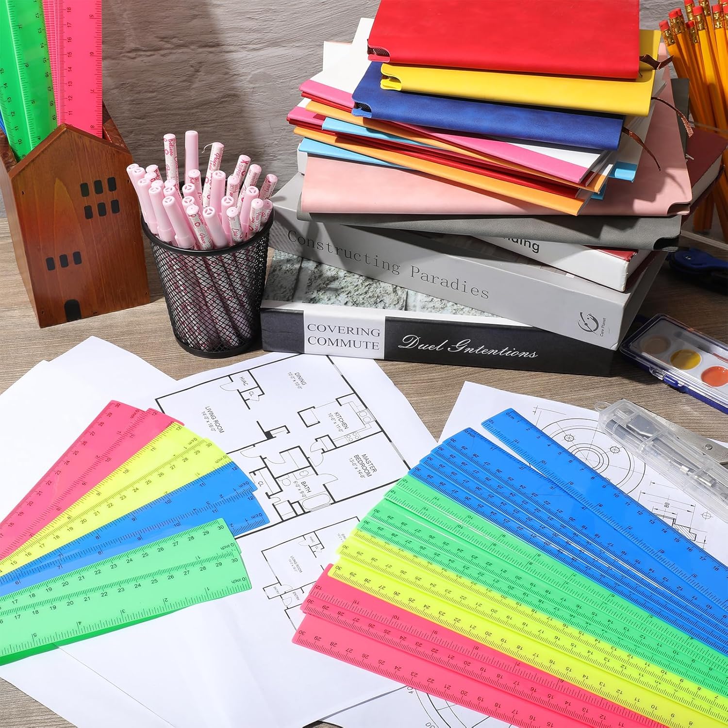 Zonon 50 Pcs 6 Inch/12 Inch Plastic Rulers Bulk Flexible Straight Rulers with Inches Centimeters First Day of School Gift Students Back to School Office Home Supplies(Colorful,12 Inch)