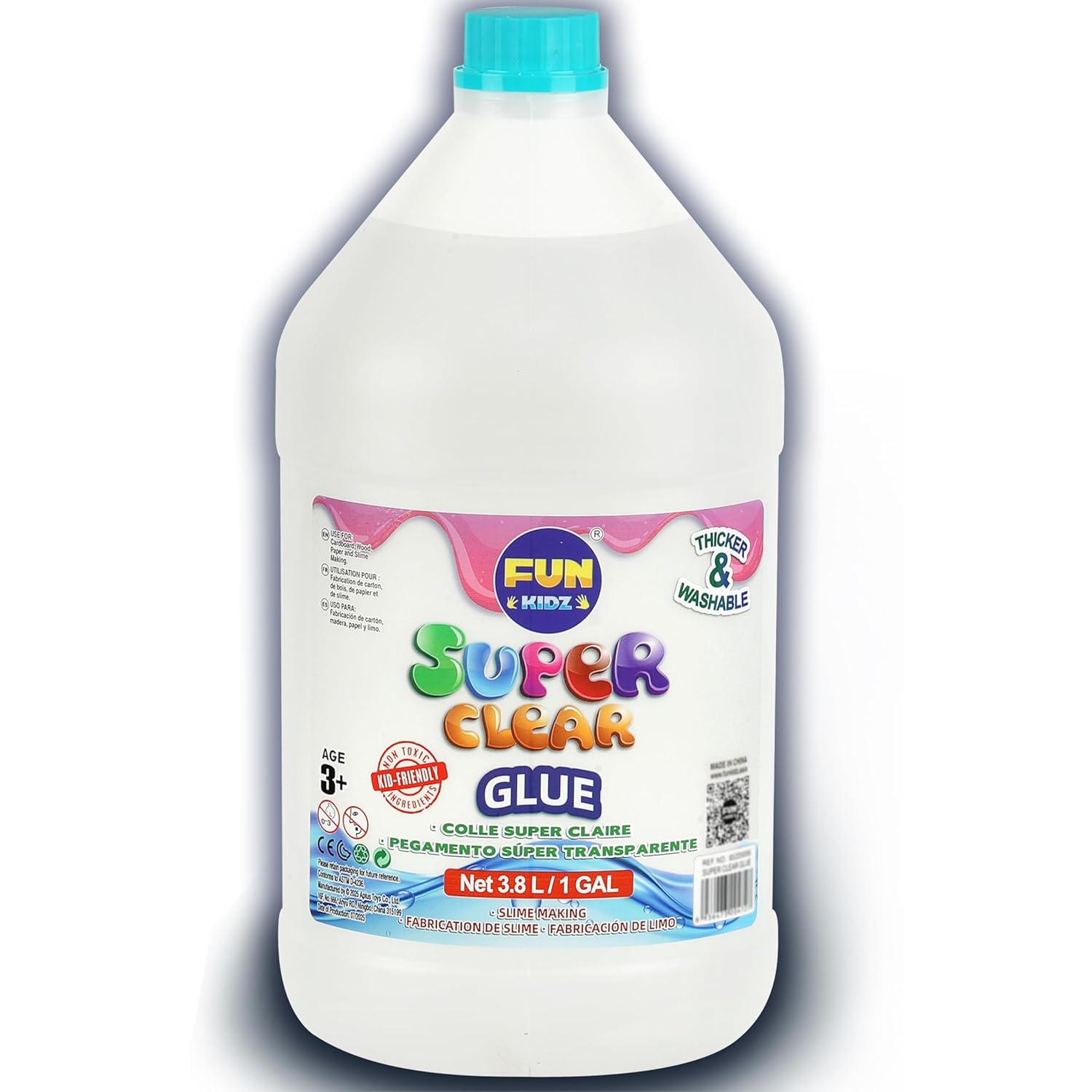 Super Clear Glue 1 Gallon, FunKidz All Purposes School Home Projects Liquid Glue Great for Slime Making Supplies Washable Non-Toxic Use for Arts & Crafts Wood Paper Cardboard