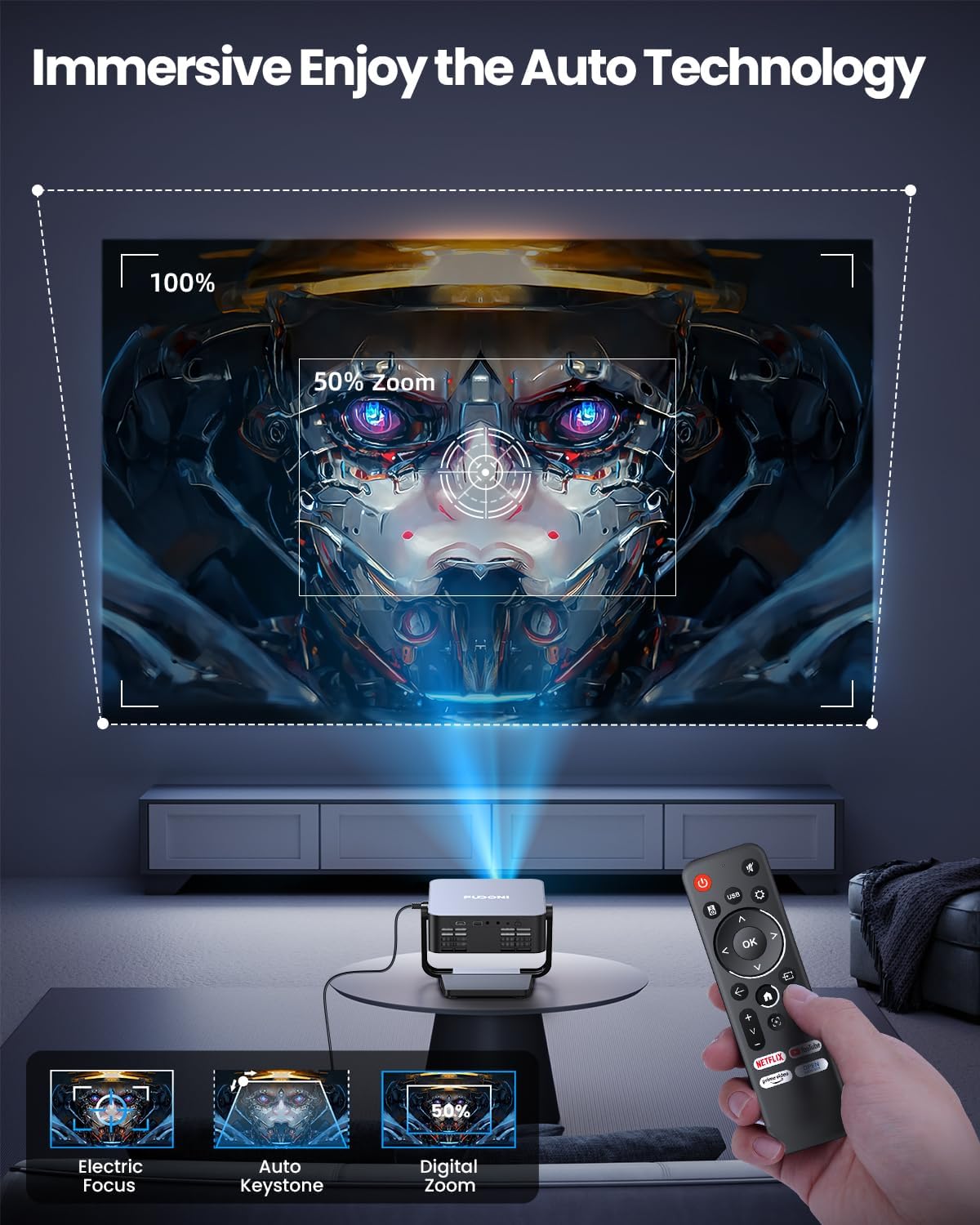 [Netflix-Officially-Licensed] FUDONI 4K Smart Projector with WiFi 6 & Bluetooth, Auto Keystone/Electric Focus, Zoom Correction, HDMI/USB/iOS/Android Compatible, Portable Proyector for Home & Outdoor