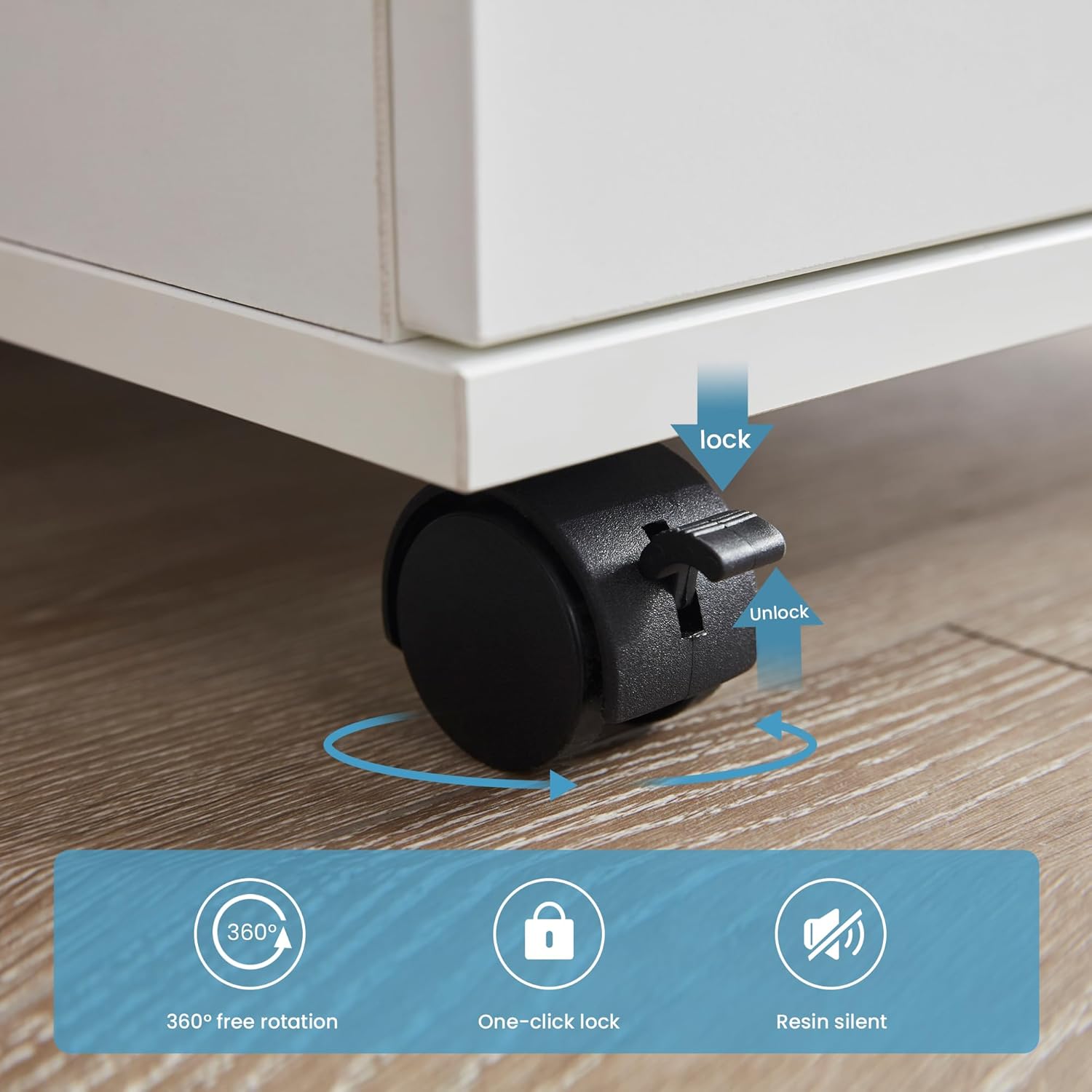 Farini 3-Drawer Under Desk Wooden File Storage Cabinet with Lockable Caster for Home Office,White,Fully Assembly
