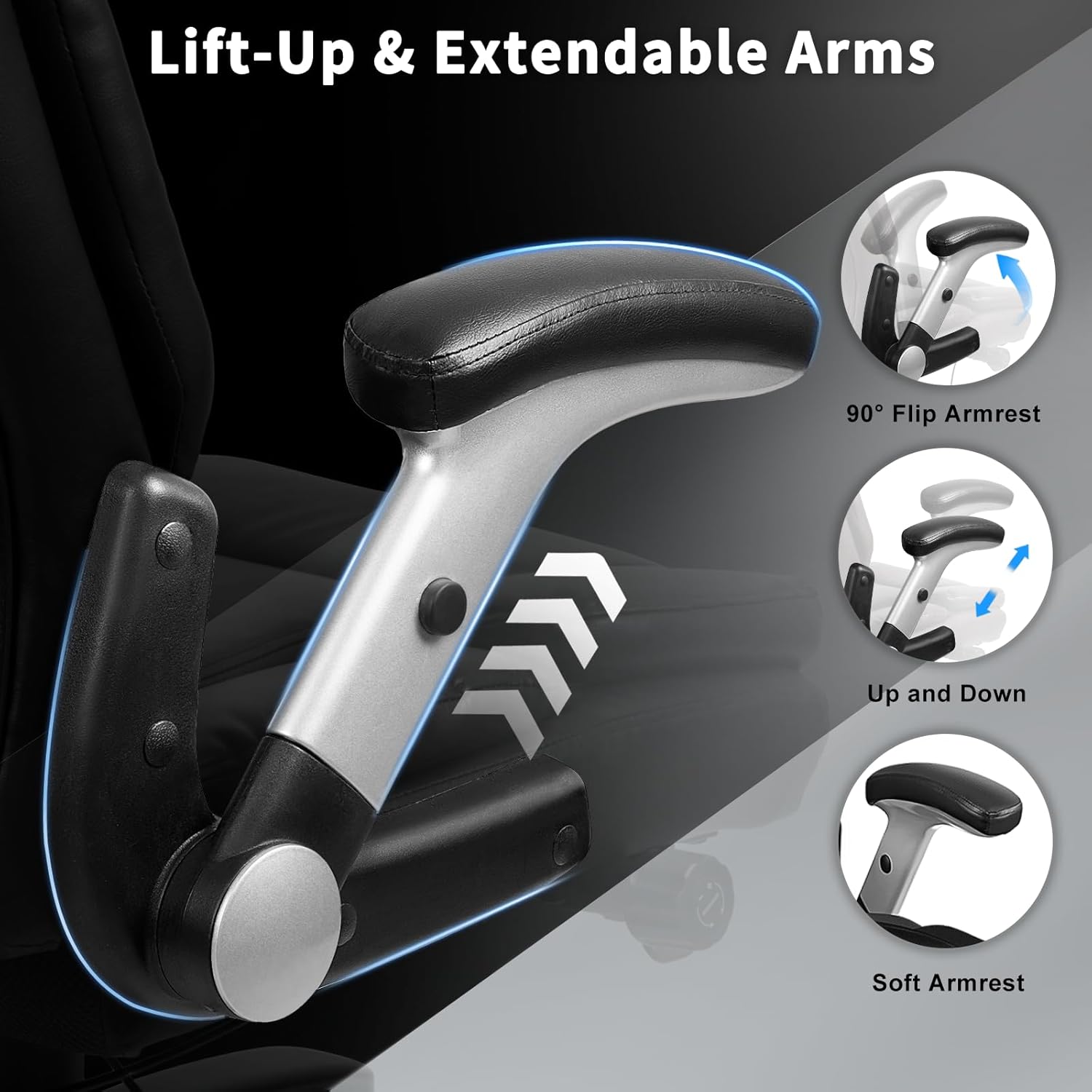 - 【Lift-Up Armrests - Space-Saving & Convenience】: This ergonomic high-back office chair features adjustable armrests that allow you to enjoy maximum relaxation while occupying minimal space. The armrests can be easily adjusted during use and conveniently tucked away when not needed, creating more room and facilitating movement. Whether you're typing, writing, or taking a break, our comfy high back heavy duty office chair ensures a satisfying seating experience.
