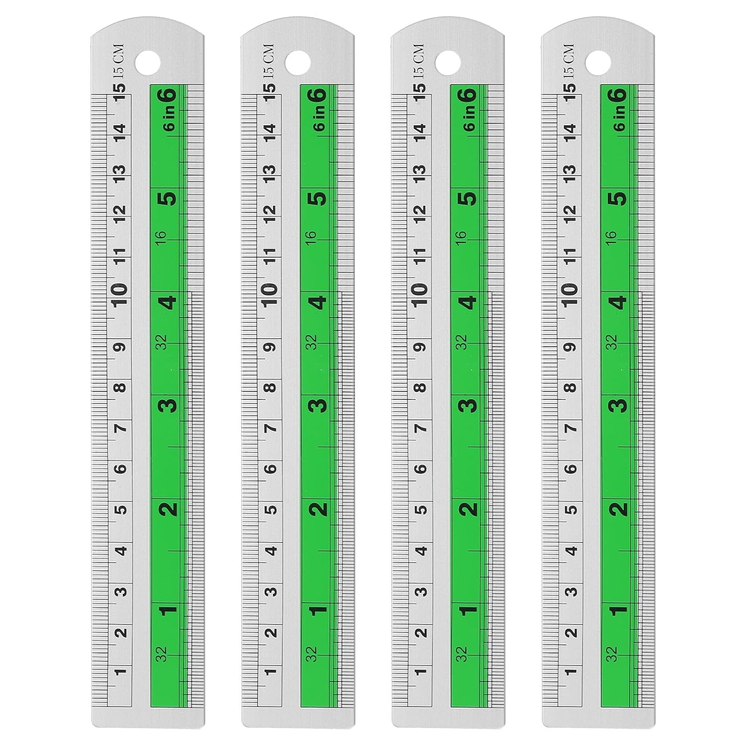 HARFINGTON 4pcs Metal Straight Ruler 15cm Metric SAE Aluminum Alloy Measuring Rulers Scale Tool with Hole for Measure Study Reading Classroom Office, Green