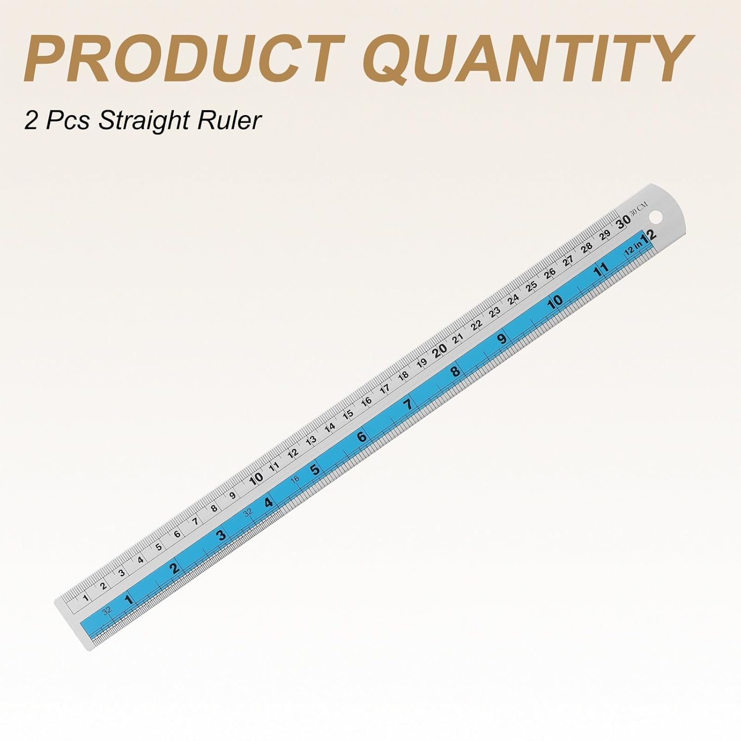 HARFINGTON 2pcs Metal Straight Ruler 30cm Metric SAE Aluminum Alloy Measuring Rulers Scale Tools with Hole for Measure Study Reading Classroom Office, Blue