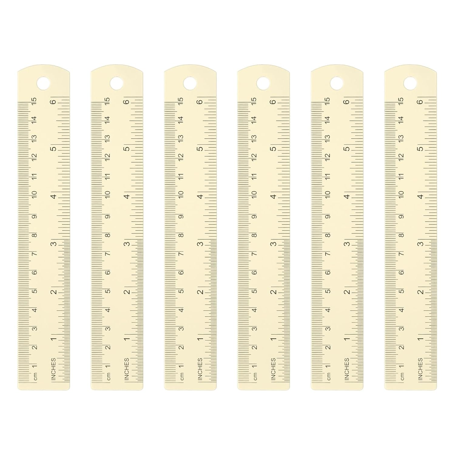 HARFINGTON 6pcs Metal Straight Ruler 15cm Metric SAE Aluminum Alloy Measuring Rulers Scale Tool with Hole for Measure Study Reading Classroom Office, White