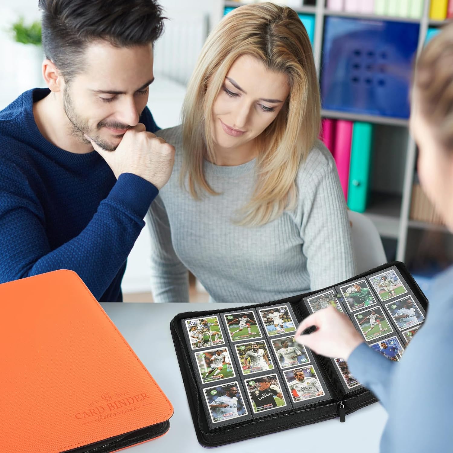 9 Pockets Card Binder,Premium Zip Trading Card Binder,540 Double Sided Pocket PU Collection Binder, Collector Album, Card Folder for MTG, TCG, Business Cards.(Hermes Orange)