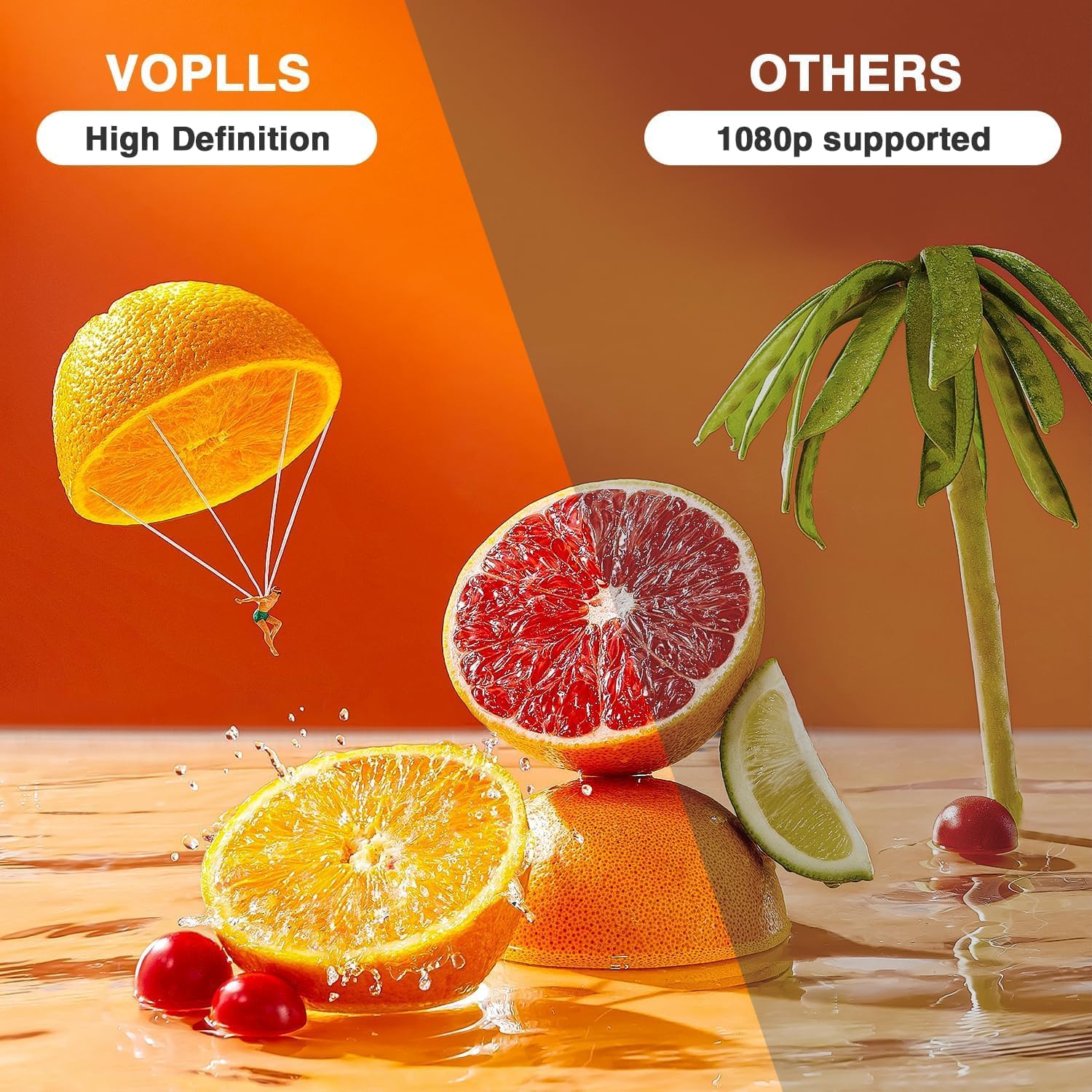 - [2025 Upgraded HD Video Projector]: VOPLLS upgraded video projector with latest 15000L led light source and 1080P Full HD supported resolution, adopts advanced LED technology and latest NTSC color technology, which make the edges of the projection brighter and clearer than other projector. VOPLLS video projector presents a vivid, real, and color-vibrant effect